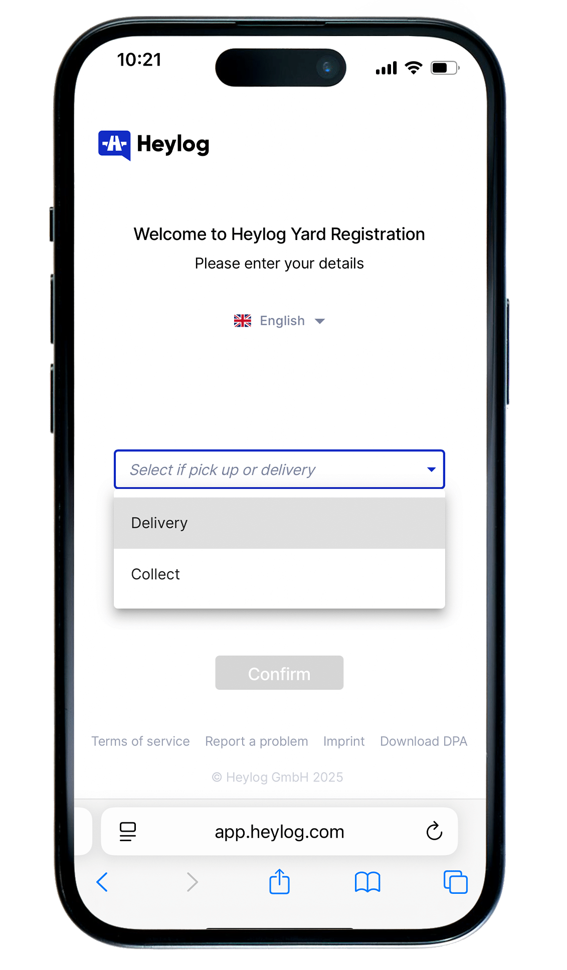 Heylog verwandelt das Smartphone der Fahrer in ein Hofabwicklungstool.