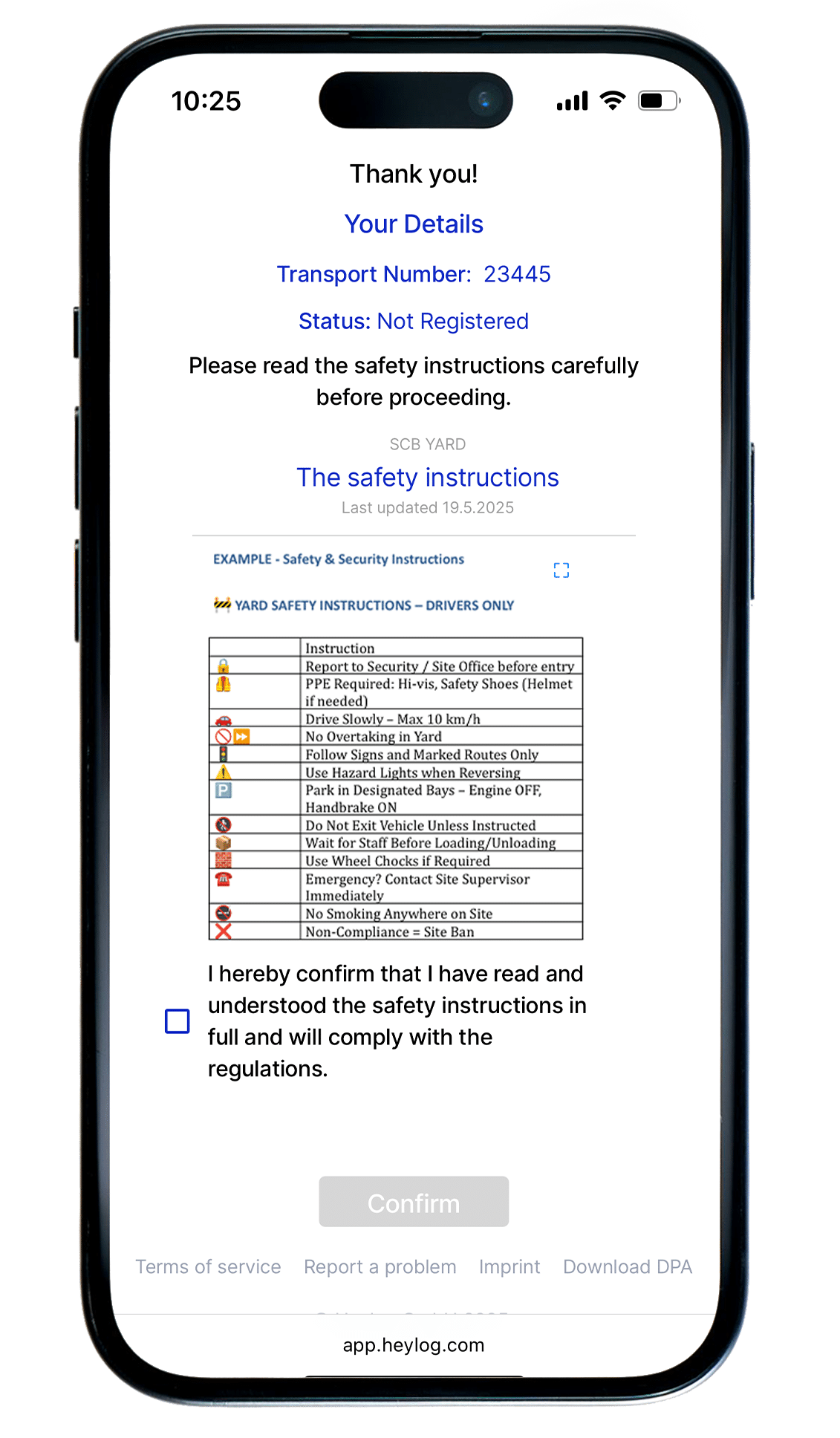 Heylog meldet Fahrer digital an, unterweist und dokumentiert automatisch – direkt über das Smartphone.