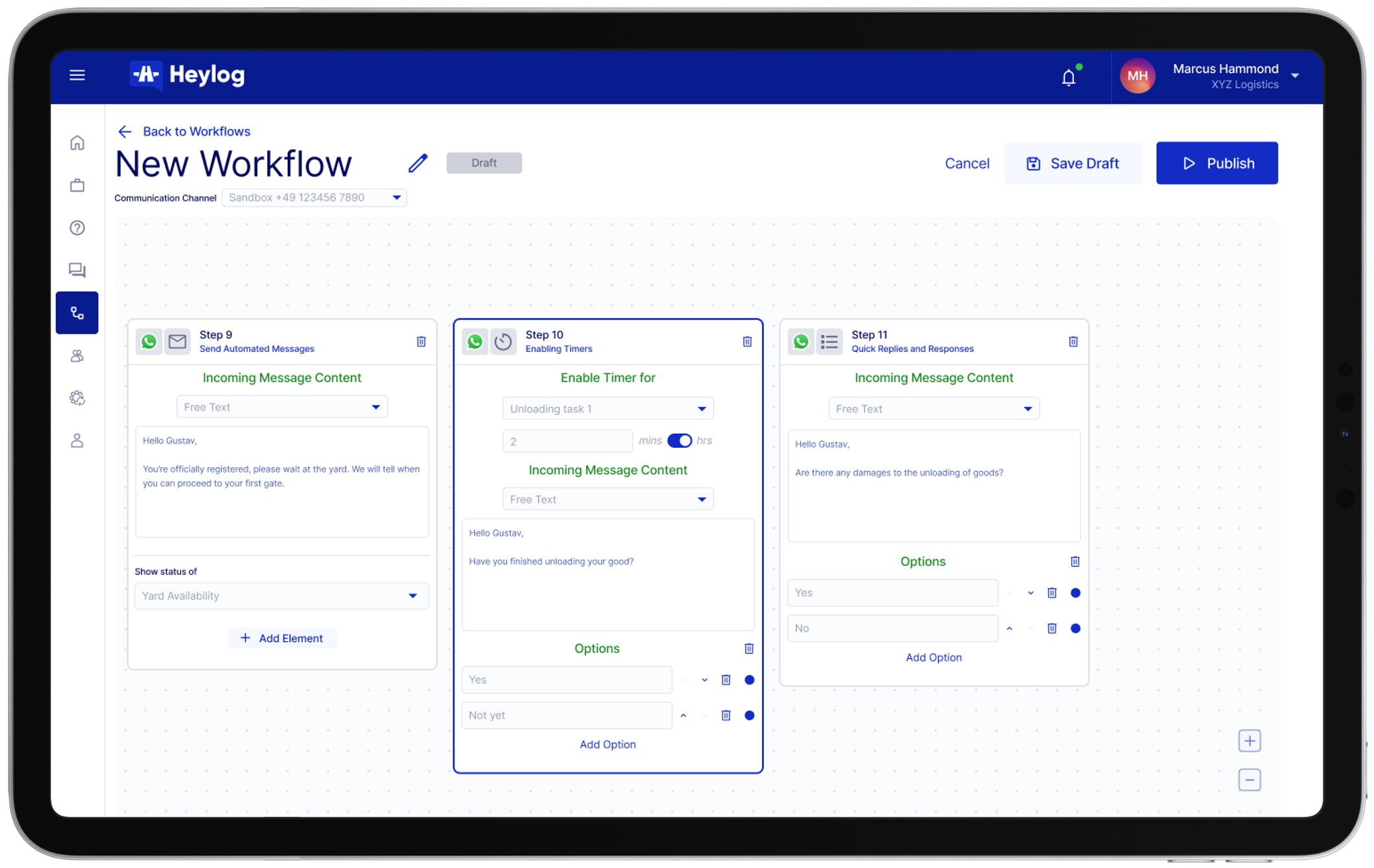 Jede Logistik ist anders – und Heylog passt sich an. Mit anpassbaren Workflows lassen sich Fahrerprozesse ohne IT-Aufwand individuell gestalten. Sie können entweder unsere Vorlagen nutzen oder einfach Ihre eigenen bauen.